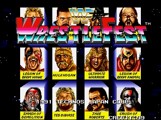 Wrestlefest Has 12 Players And Is An Excellent Game! It Was Created By Big Daddy Loi, But He Shut His Page Down Because He Coudn't Be Bothered Anymore. Instuctions For Win95-NT-98 = Unzip The Emulator "Raine" Into A Directory Called "raine" (No Speach Marks) .Go Into That Directory, Double Click On A File Called Makedirs.Bat . Look For A Directory Called "WrestleF" Unzip WrestleFest In There. Copy The File raine.exe Into That Directory. Double Click On raine.exe And Change Your Controls To The Ones You Want. Click On Change Game, Down The List And Click On Wrestlefest. Note:You Will Have To Unzip This Game In The Directory Called WrestleF Each Time You Play It.